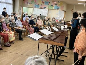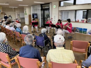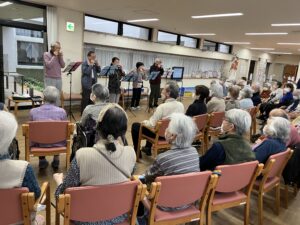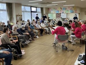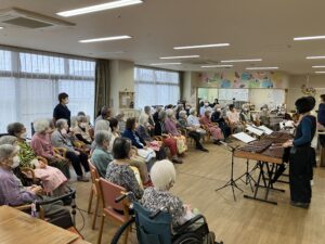 音色の美しさに感動しました!演奏に合わせて一緒に歌いご利用者の皆さん楽しい時間を過ごされていました。