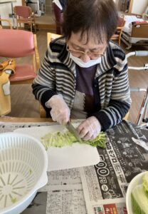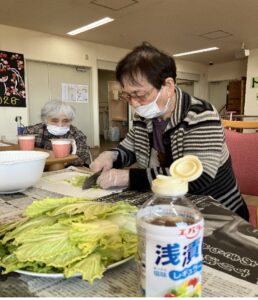 お知らせ 2026.03.02 フォトギャラリー 白菜収穫体験 デイサービスセンターけやき園です。 冬晴れの中、デイサービスの畑で立派な白菜を収穫しました! ずっしりと重い白菜を抱え、「重いねぇ!」「これなら美味しい漬物ができるわ」と、活気のある声が聞こえてきました。 土の香りと冬の寒さを肌で感じながら、皆様の晴れやかな笑顔が印象的でした。 昼食に出来立ての浅漬けを皆さんで美味しく頂きました! 前のお知らせ 一覧へ戻る 次のお知らせ